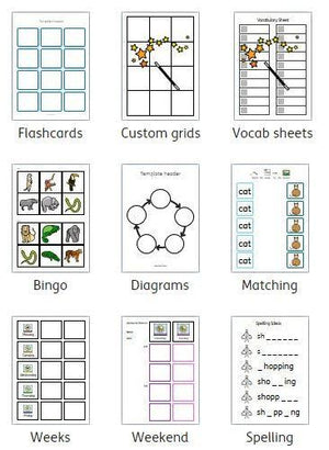 Create symbol communication boards, vocabulary sheets, flashcards for a range of different purposes including visual aids to lessons, vocabulary teaching at home, and ESL/ELL resources.