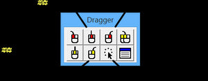 Dragger is a software utility for manipulating the left, right and middle mouse buttons of a standard mouse or mouse emulator, like the HeadMouse® often utilized by people who have physical motor challenges. Dragger can be used to enter mouse clicks via direct selection (often with an adaptive switch) and by holding the mouse pointer motionless which is commonly referred to as "dwell". The dwell selection function in Dragger is called AutoClick. When enabled, AutoClick monitors the pointer and clicks the left mouse button when the pointer is brought to rest for the programmable dwell time. If the pointer remains motionless it will not click again. Using the Dragger toolbar this single left click can be turned into a Double Click, Right Click, Middle Click, or Left, Right and Middle Drag.