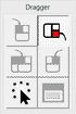 The Dragger toolbar can be resized and displayed in several layouts. Layout is controlled by dragging a toolbar corner.