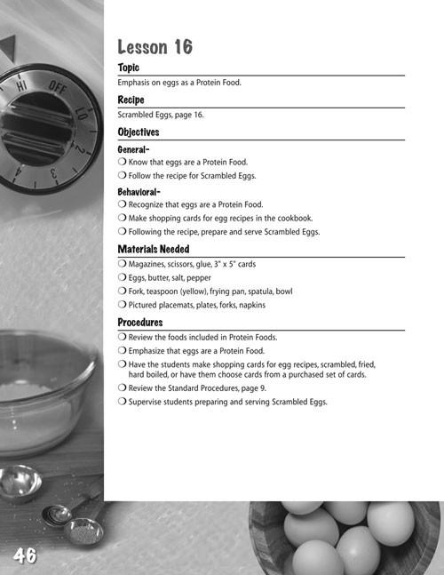 Look 'n Cook Lesson Plans include 40 lessons teaching kitchen safety, cooking techniques and nutrition using the recipes in Look 'n Cook Cookbook. Each lesson lists objectives, materials needed and procedures with teaching suggestions. You can print out recipe pages for each student in class from the PDF file. Includes data ?collection system.