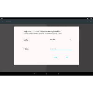 The Luminea Router creates a Wi-Fi network dedicated to Luminea products. Control the Luminea effects from the tablet by using this factory configured router.