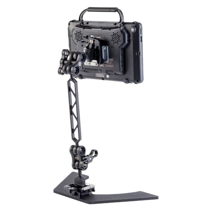 Weighted base that is great for desks, tables, floors, and other flat surfaces. Base comes with a QuickClick connector to use with any MOGO arms.